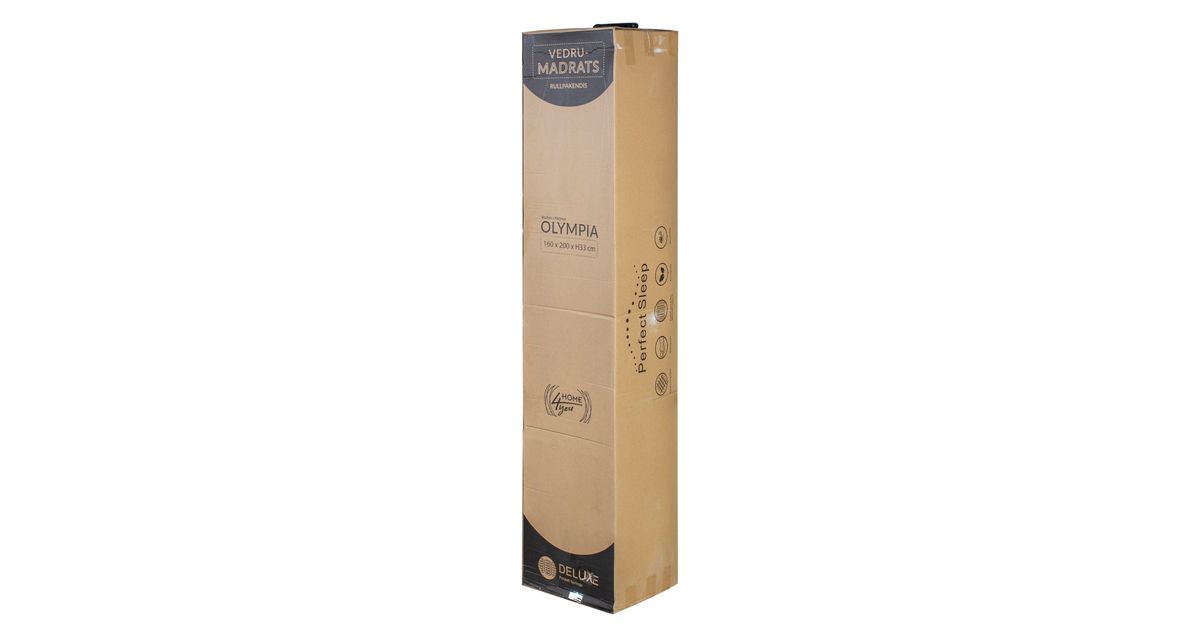 PERFECT SLEEP BY HOME4YOU. Lisamugavust pakkuv kattemadrats koos vedrumadratsiga. Keskmine jäikus. Pakitud deluxe-pocket vedrustus ( 1.9mm / äärtes 2.2mm), vedruploki kõrgus 26cm, seda katab vildikiht ja 3,5cm poroloonikiht. Vedrumadratsi peale on kinnitatud kattemadrats, mille sisuks on kvaliteetne profileeritud poroloon 3,5cm, mis laseb õhuvoolul liikuda ja niiskust ära juhtida. Hele stretch-kangast madratsikate on nahasõbralikust ja pehmest puuvilla-polüestrist (kangakaal 280g/m2). Kangas, vilt ja vatiin vastavad rahvusvahelisele Öko-Tex 100 standardile. Madrats on pakitud rulli, et oleks lihtsam koju transportida. Madrats vajab oma esialgse kuju taastamiseks kuni 2 tundi aega - eemaldage ettevaatlikult kilepakend ja asetage madrats voodi peale.