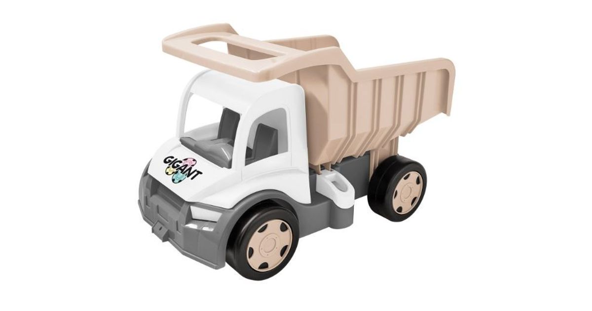 The giant tipper in light beige, gray and white is a fantastic, large car with a length of 55 cm. The vehicle has a hitch in the front, 2 hooks in the front and in the back (you can attach another vehicle or trailer from the Gigant series and a tow rope) and in the back. Huge durability (load capacity up to 150 kg) guarantees great fun. Solid and durable, multifunctional design will ignite the hearts of all little lovers of trucks and will serve them for years. The tipper has an open tipper with a comfortable handle on which the child can carry whatever he wants. Kids will love the ability to load, unload and transport their favorite toys, as well as crazy rides around the house and garden. It supports learning to walk, stimulates the childs imagination, supports the development of his manual skills and motor coordination.