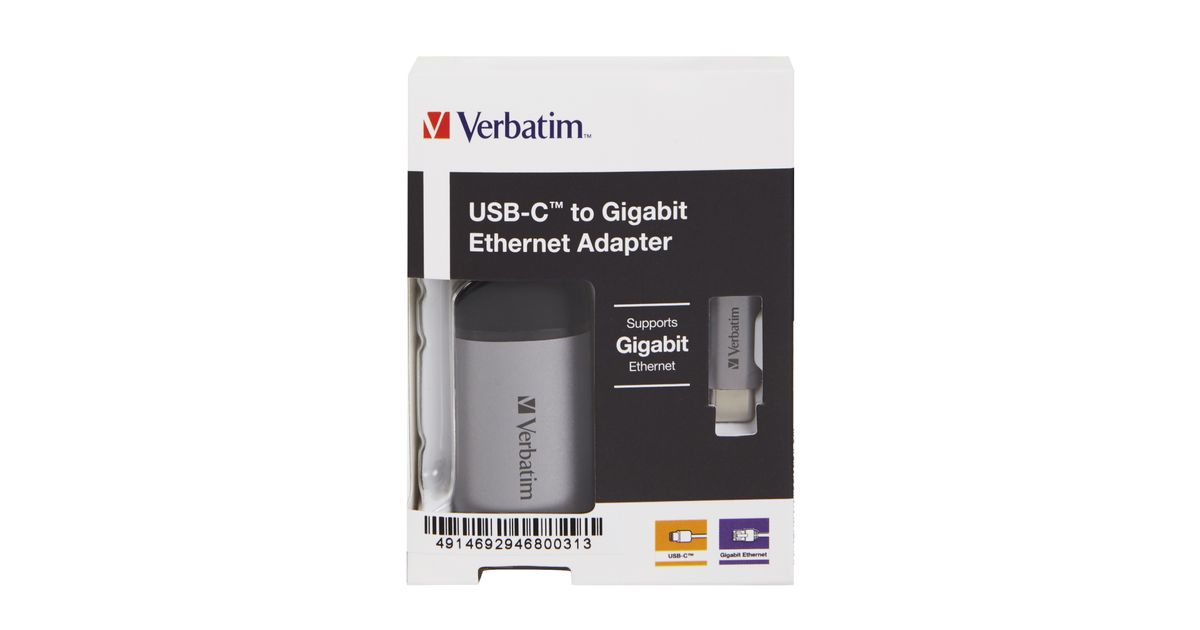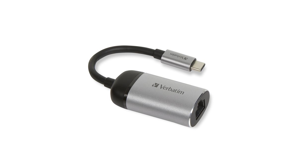 Verbatim 49146, USB 3.2 Gen 1 (3.1 Gen 1) Type-C, RJ-45, 1000 Mbit/s, Must, Hõbe, Metall, 0,01 m