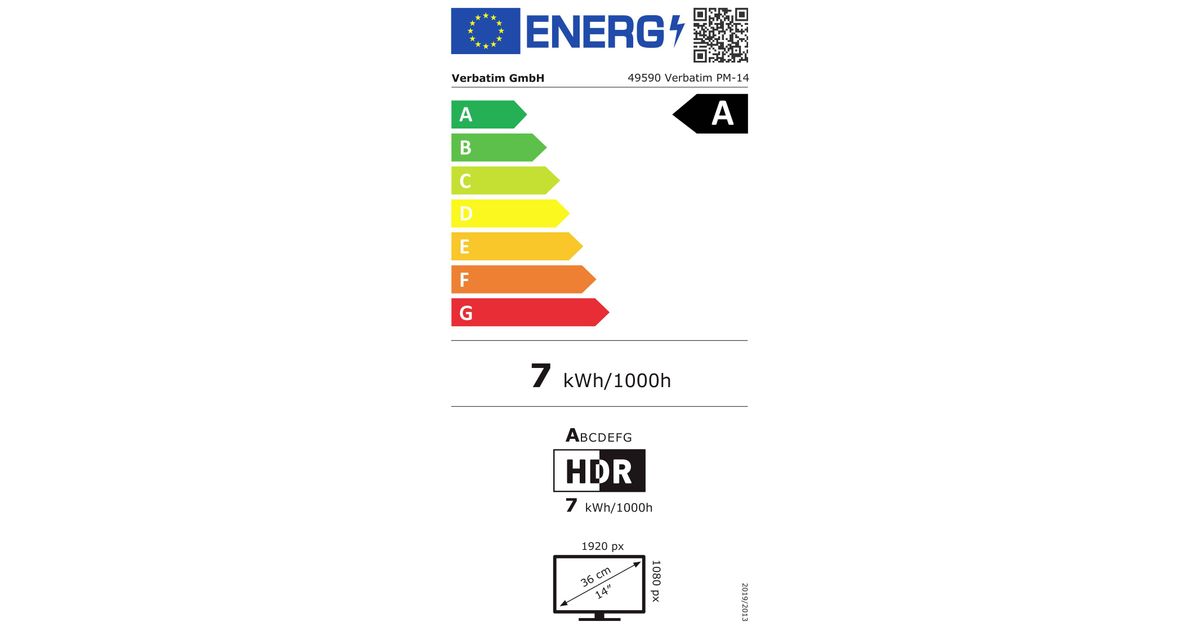 Verbatim 49590 PC lamekuvar 35,6 cm (14") 1920 x 1080 pikslit Full HD Must