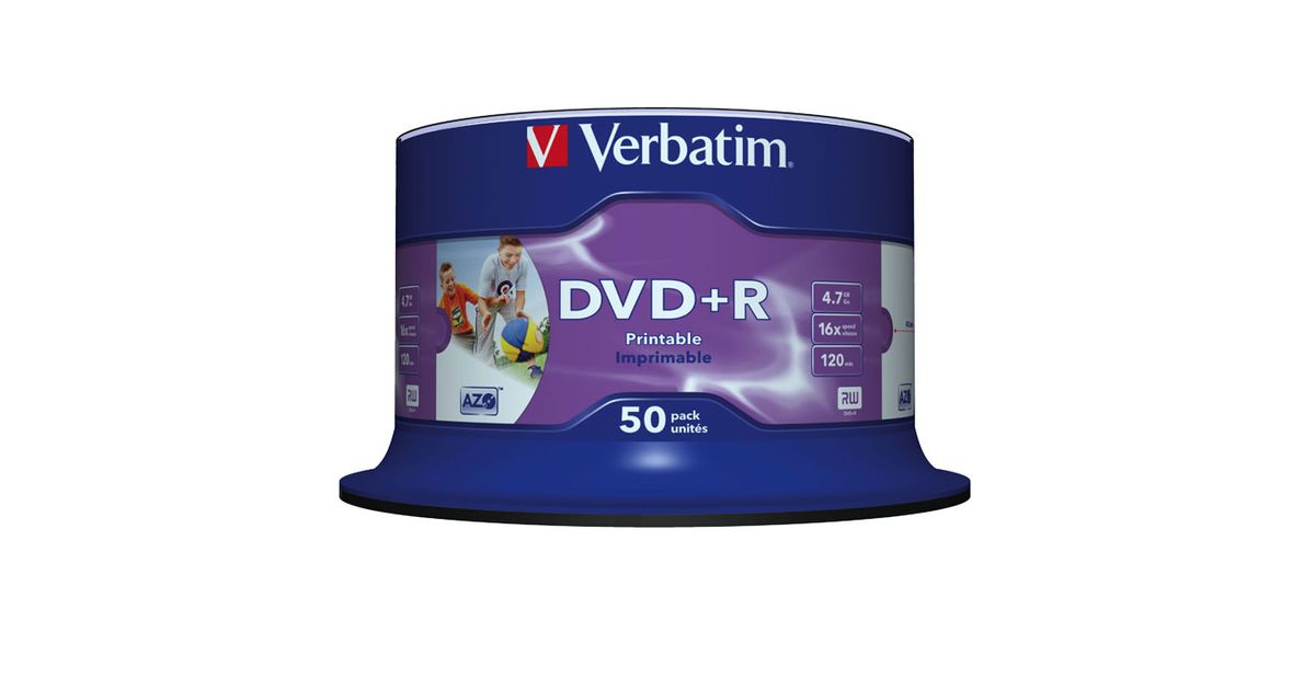 Verbatim DVD+R Wide Inkjet Printable No ID Brand 4,7 GB 50 tk