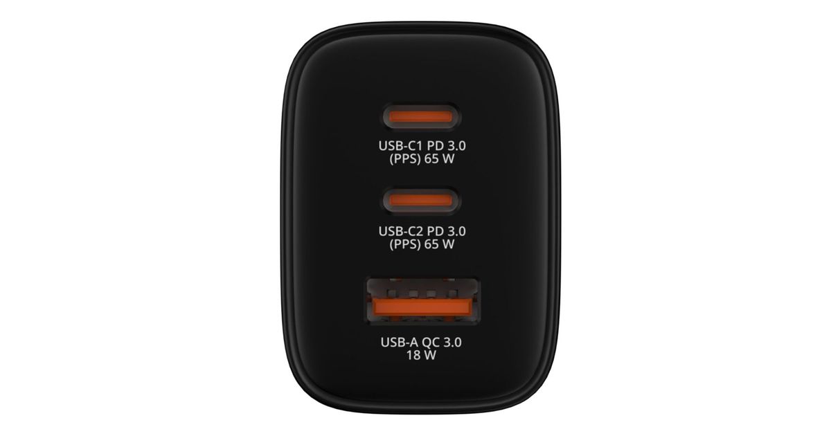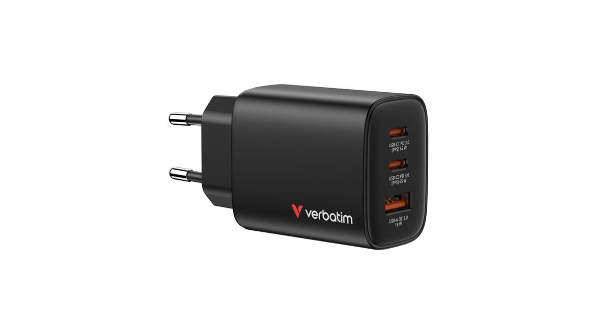 Verbatim Essentials GaN Charger 65W 2xUSB-C/1xUSB-A schwa. 32352