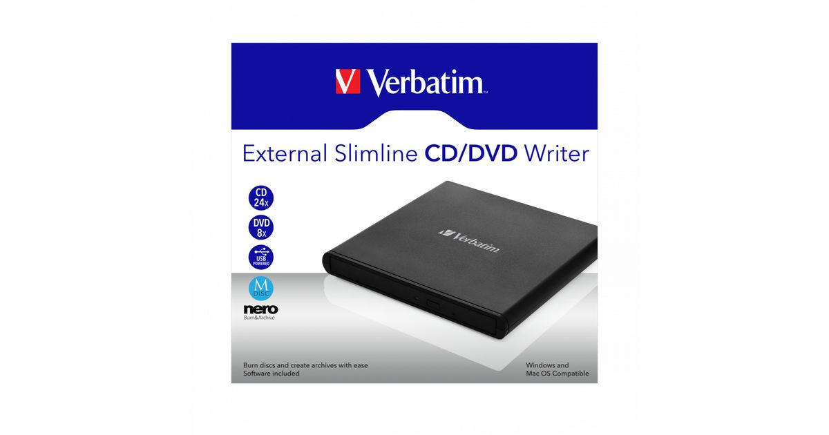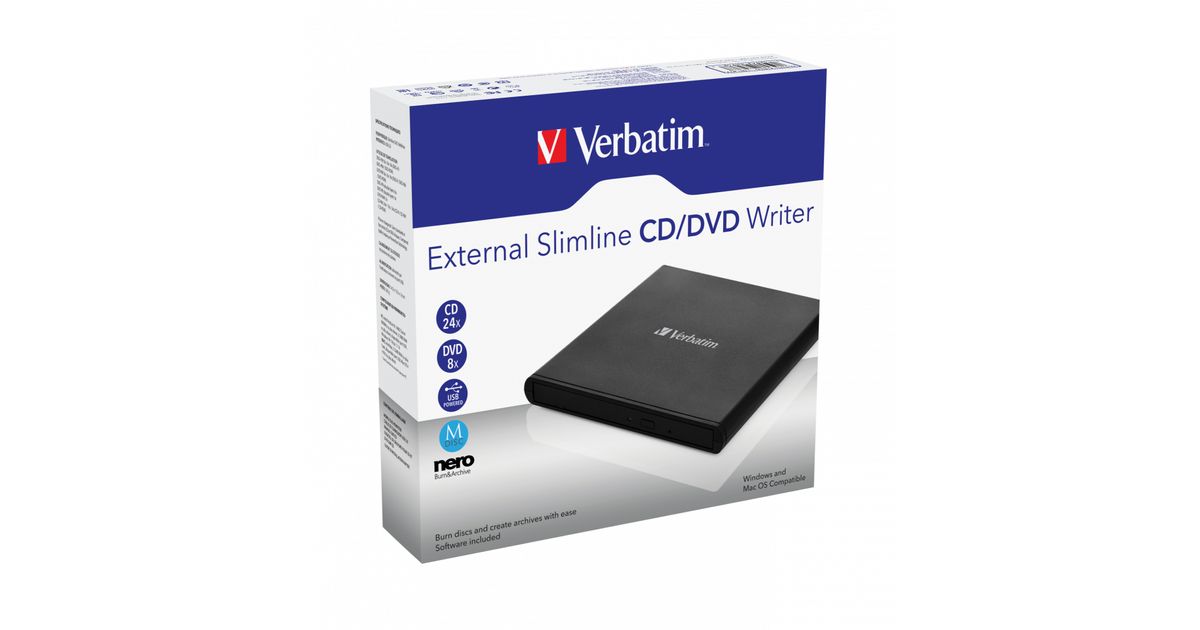 Verbatim External Slimline CD/DVD Writer optiline kettaajam DVD±RW Must