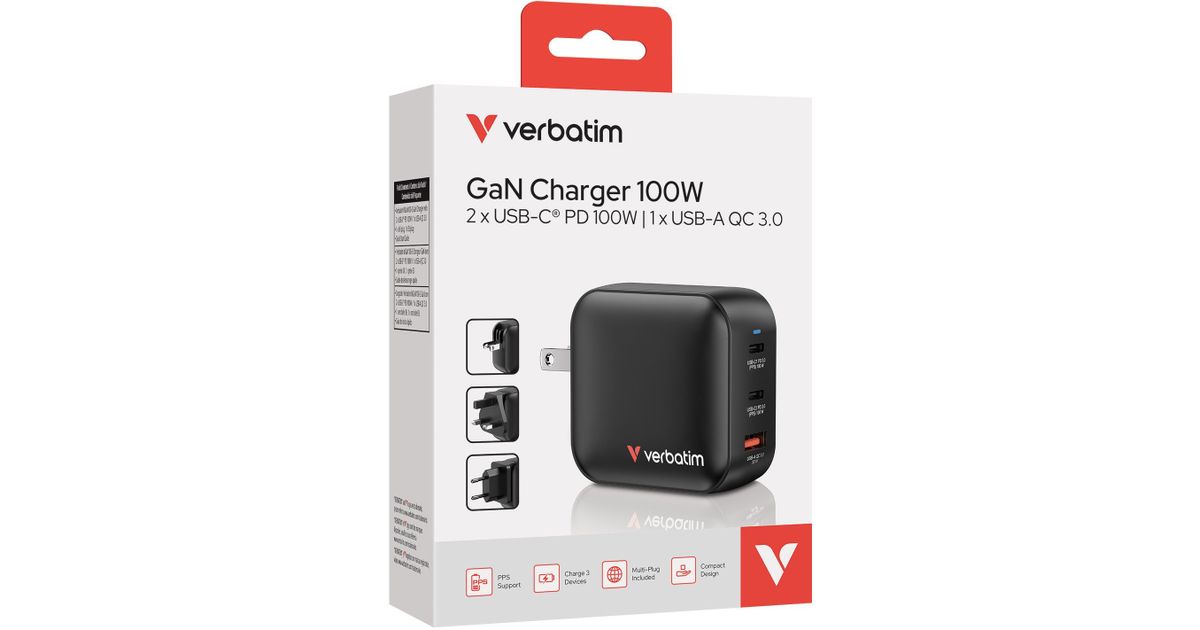Verbatim Mini GaN Charger 100W 3Port US/EU/UK ADP 32230
