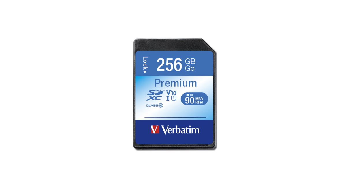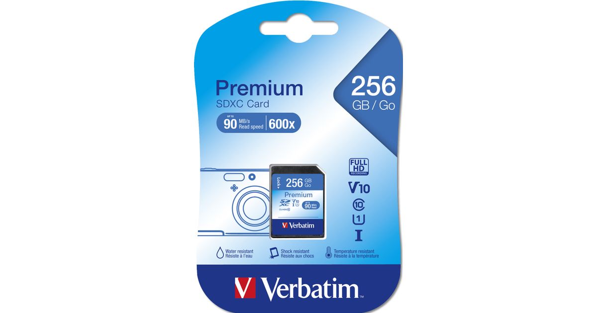 Verbatim Premium, 256 GB, SDXC, Klass 10, UHS-I, 90 MB/s, 10 MB/s