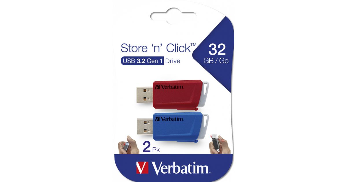 Verbatim Store 'n' Click USB-välkmälu 32 GB USB tüüp A 3.2 Gen 1 (3.1 Gen 1) Sinine, Hall, Punane