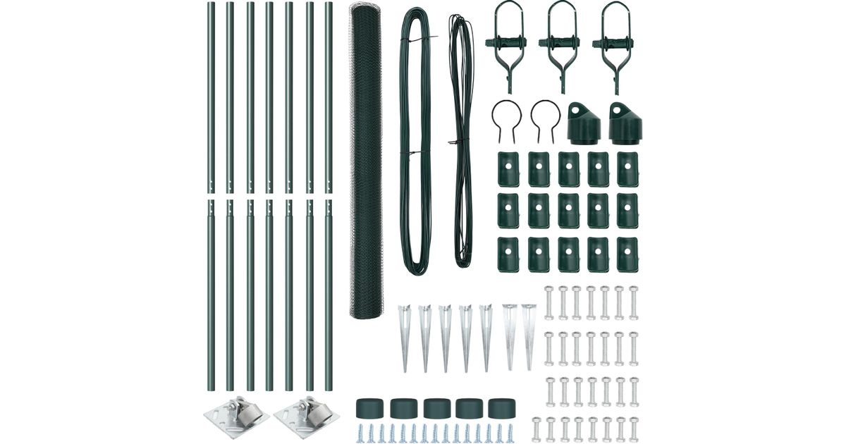 vidaXL Kuusnurkne Aia Roheline 1,6x10 m Teras, vidaXL Aiapostid naeltega 7 tk. 32 mm 180 cm tsingitud teras - Aiad - Aiadekoratsioonid - Vaba aeg - Aed ja terrass - MT Shop