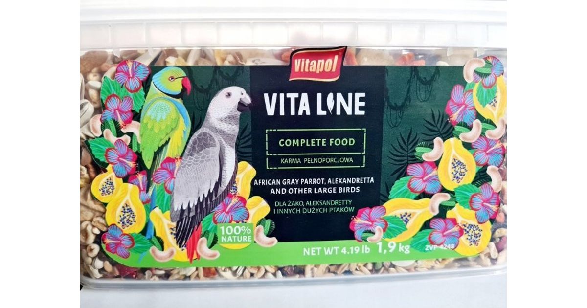 Vitapol Vitaline Complete food for gray parrots, parakeets and other large parrots, 1.9 kg bucket - Toit - Linnud - Lemmikloomatooted - MT Shop