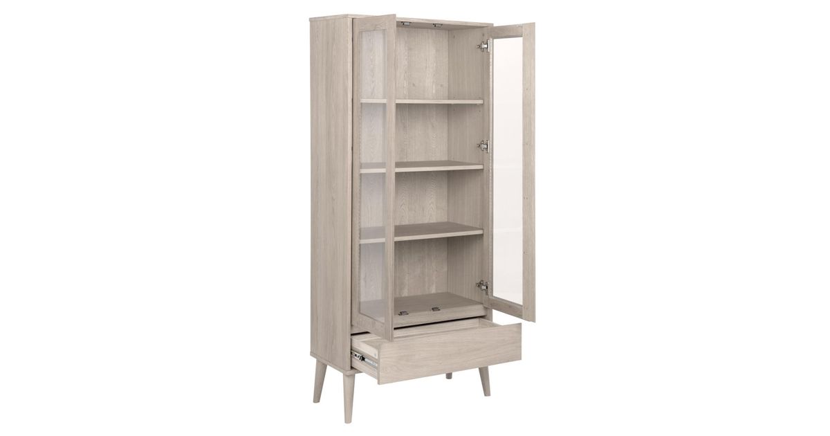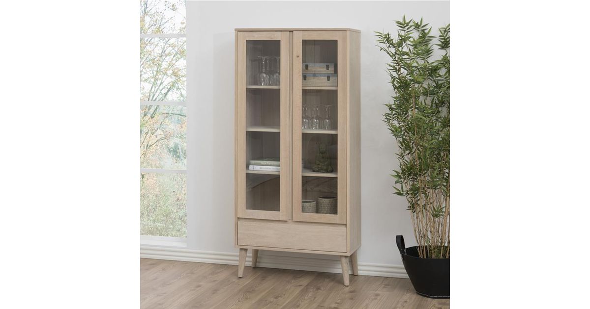 Vitriinkapp NAGANO 37x80xH178cm, 2-klaasukse ja 1-sahtliga, materjal: puit/tammespoon, viimistlus: õlitatud