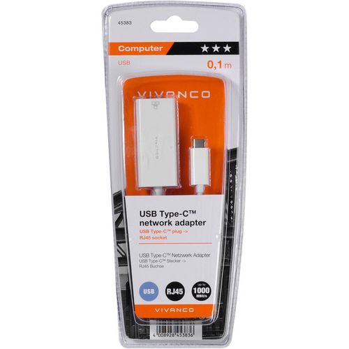 Vivanco CC UC RJ45, Juhtmega ühendatud, USB tüüp-C, Ethernet, 1000 Mbit/s, Valge