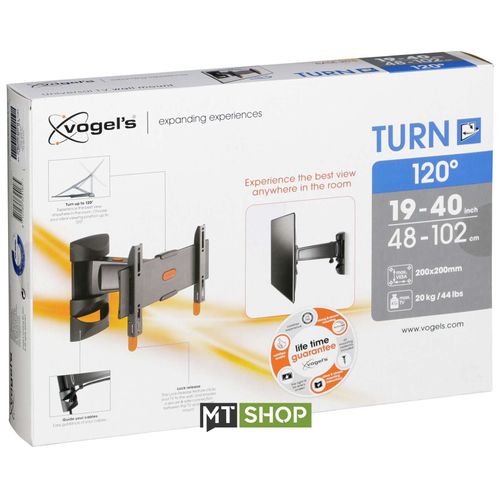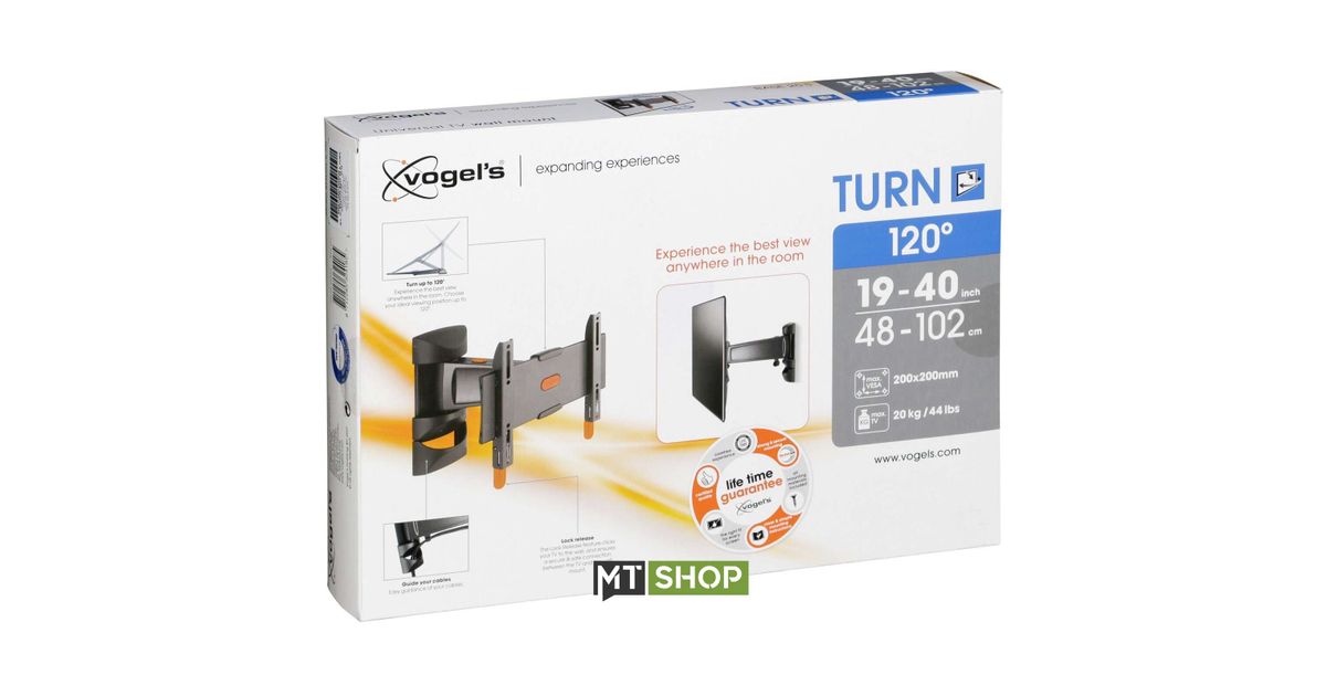 This mount fits TVs from 19'' to 37'' that weigh up to 20 kg. Turn your screen up to 60 degrees left or right (depending on the TV size), to get the perfect viewing angle from any position. A special lock release feature clicks your TV to the wall, and holds your TV safely and securely on the wall mount. Comes with easy mounting instructions, and all the screws and wall plugs you might need.