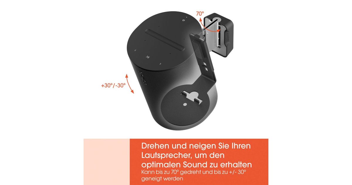 This speaker mount has been specially developed for wall mounting the Sonos Era 100 speaker. With a swivelling range of up to 70° and a tilt range of 30° (upwards or downwards), you can position your speakers perfectly with the Vogel's speaker wall mount.