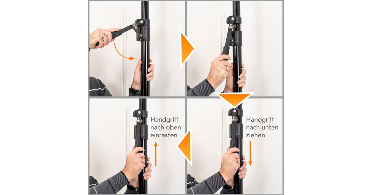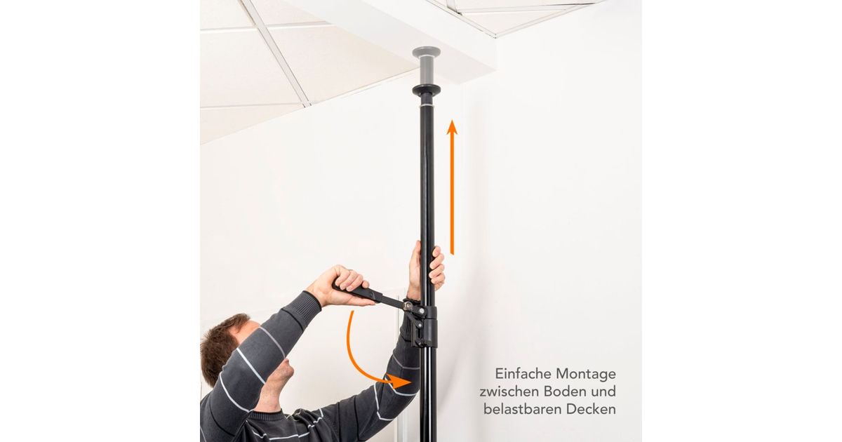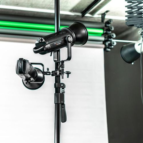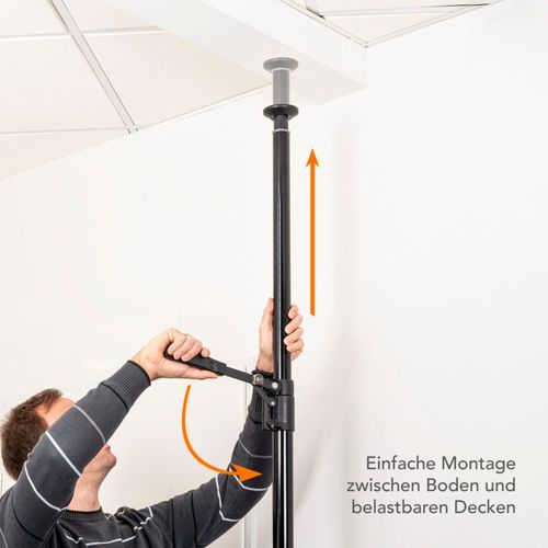 You can quickly and conveniently attach lights, studio flashes, background systems and other accessories to this sturdy autopole - reversibly and without drilling. It is simply clamped between the floor and ceiling or between two walls. This allows flexible and space-saving use in the studio and on the road.
