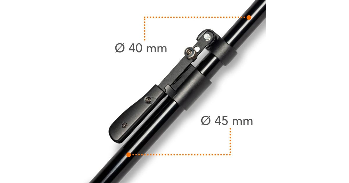 Because it is made of aluminium, the Autopole is very light and easy to transport. It is therefore also suitable for professionals who are often on the road. The Autopole is quick and space-saving to stow away and take with you. Thanks to its compact design, it is particularly suitable for smaller rooms and studios. It can be extended from 2.20 m to 3.80 m and thus optimally adapts to the room height.