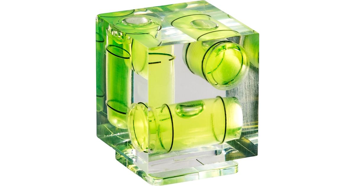 This water level allows you to position your camera perpendicular, even if your ball head, panhead and tripod do not include an own level. Due to its measurement, it does not require much space. Through the bubble levels, it is possible to position your camera in three axis perfectly, whereby it is optimal for the use in panorama and portrait format photography.