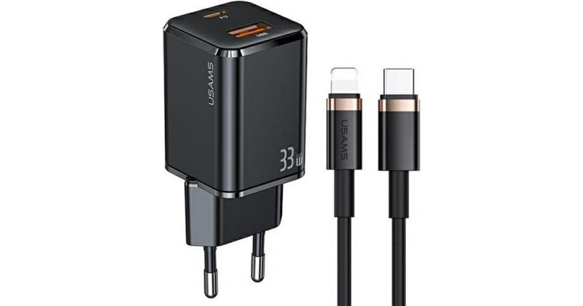 Wall charger USAMS T43 1xUSB-C / 1xUSB 33W PD 3.0 + QC 3.0 + cable U63 USB-C / Lightning black / black USKTZ01