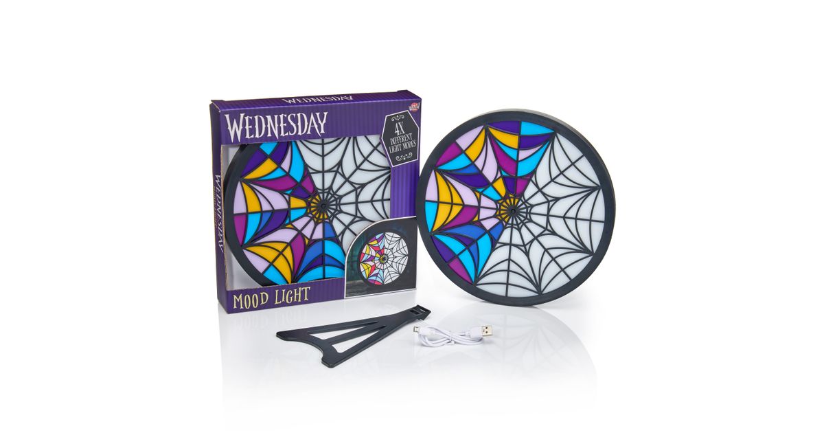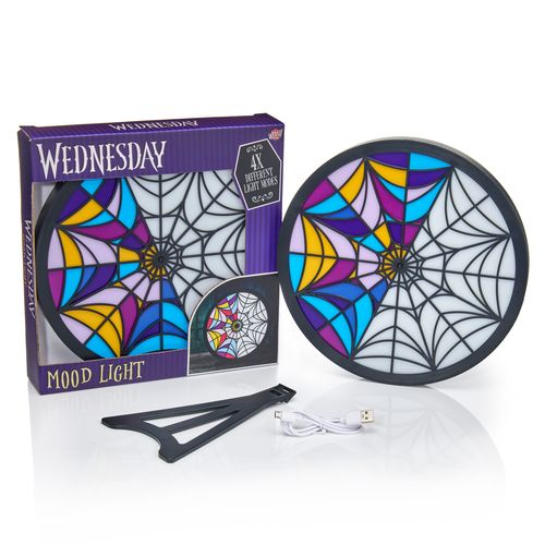 Mitmevärviline öövalgusti, mille kujundus kujutab Wednesday ja Enidi ühiselamu akent. Pirnil on 4 erinevat funktsiooni, nii et seda ämblikuvõrguga akent saab iga kord erinevalt valgustada. Valgusti töötab USB-kaabli (1,5 m pikkune kaabel on kaasas) või 3 x AAA patareiga (patarei ei kuulu komplekti). Wednesday öövalgusti saab riputada seinale või asetada komplekti kuuluvale stendile ja asetada voodi kõrvale või riiulile.