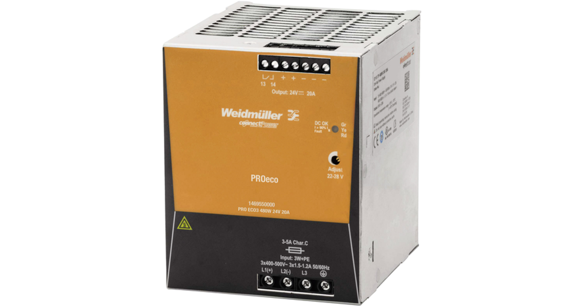 Weidmüller Pro Eco3 480W 24V 20A Rail Mounted Psu (Din) 12 V Dc 20 A 480 W No. Of Outputs:1 X Content 1 Pc(S)