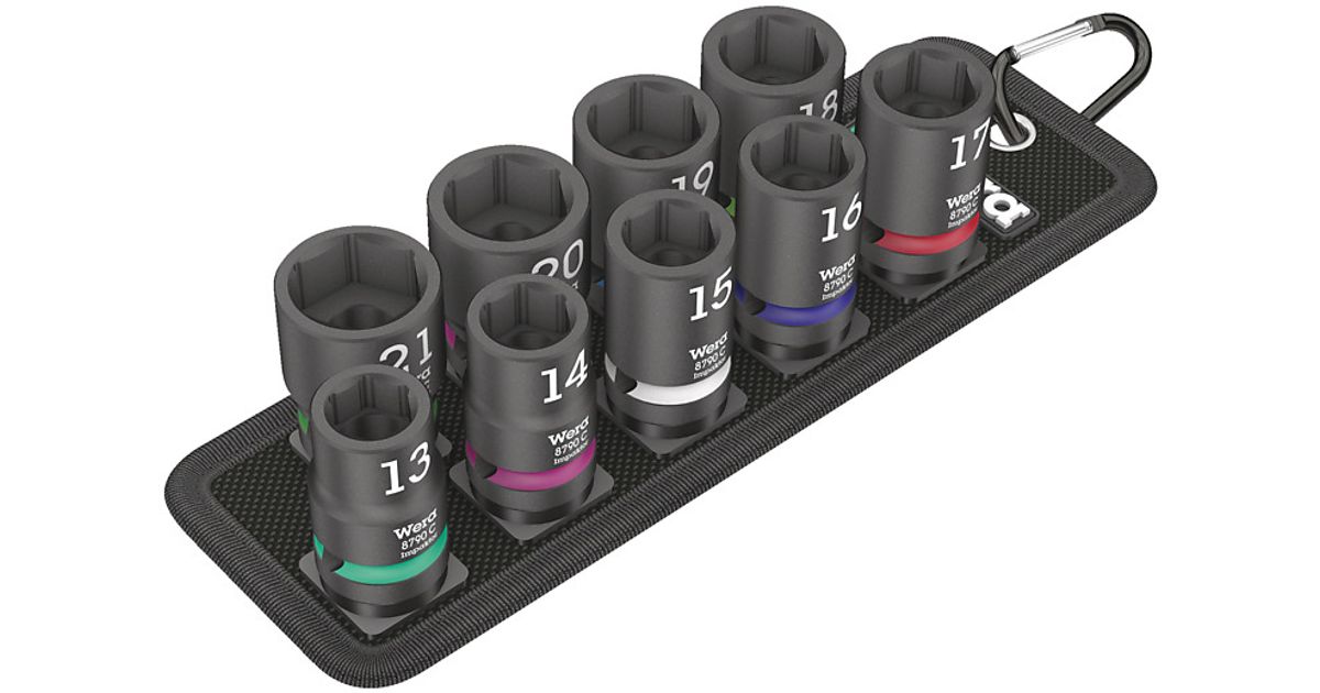 Wera 05004580001, Pistikupesa komplekt, 1/2", Meetrites, 9 pea(d), 13,14,15,16,17,18,19,20,21 mm, 230 mm