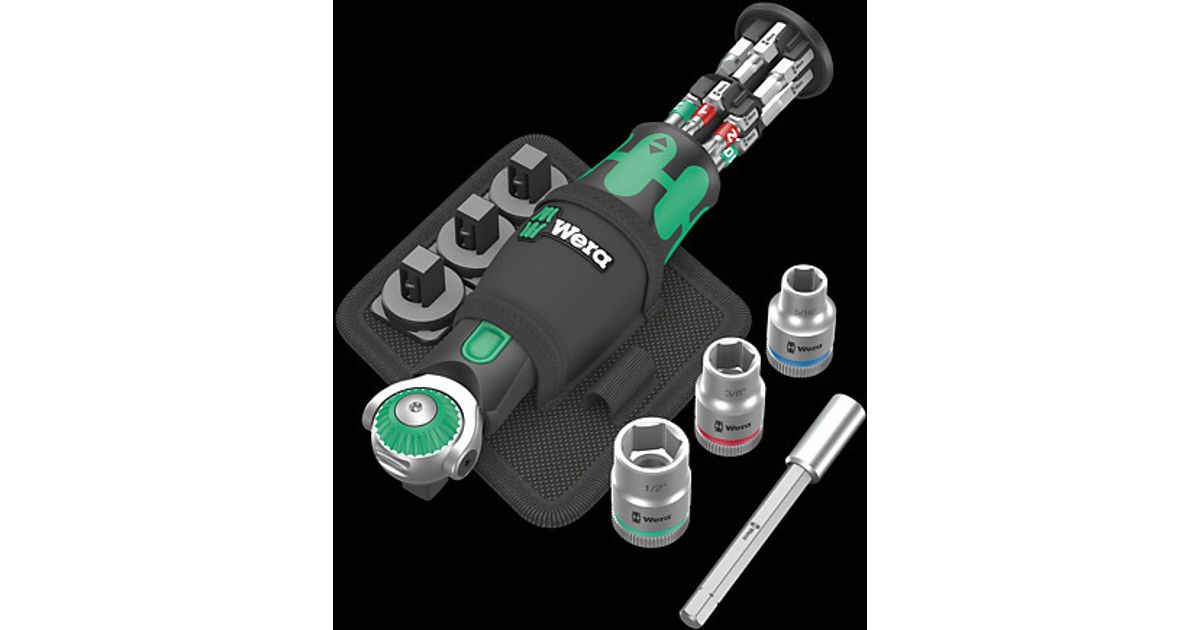 Wera 8009 Zyklop narre käepide komplekt 1/4" otsakutele ja 3/8" padrunvõtmetele, 18osa, tollmõõt