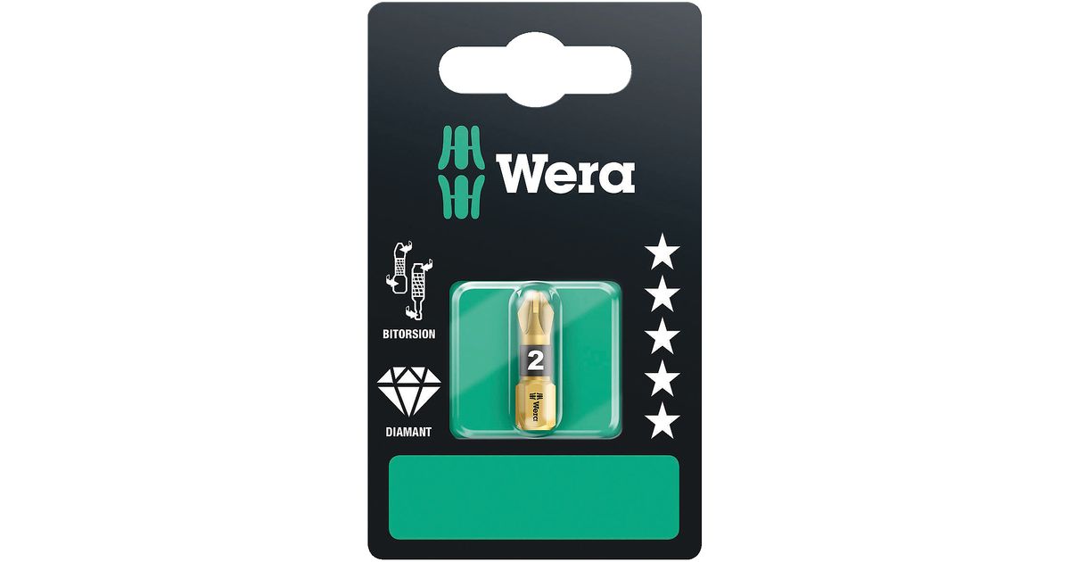 Wera 855/1 BDC SB, 1 tk, Pozidriv, PZ 2x25, ISO 1173-F, 25 mm, 25,4 / 4 mm (1 / 4")
