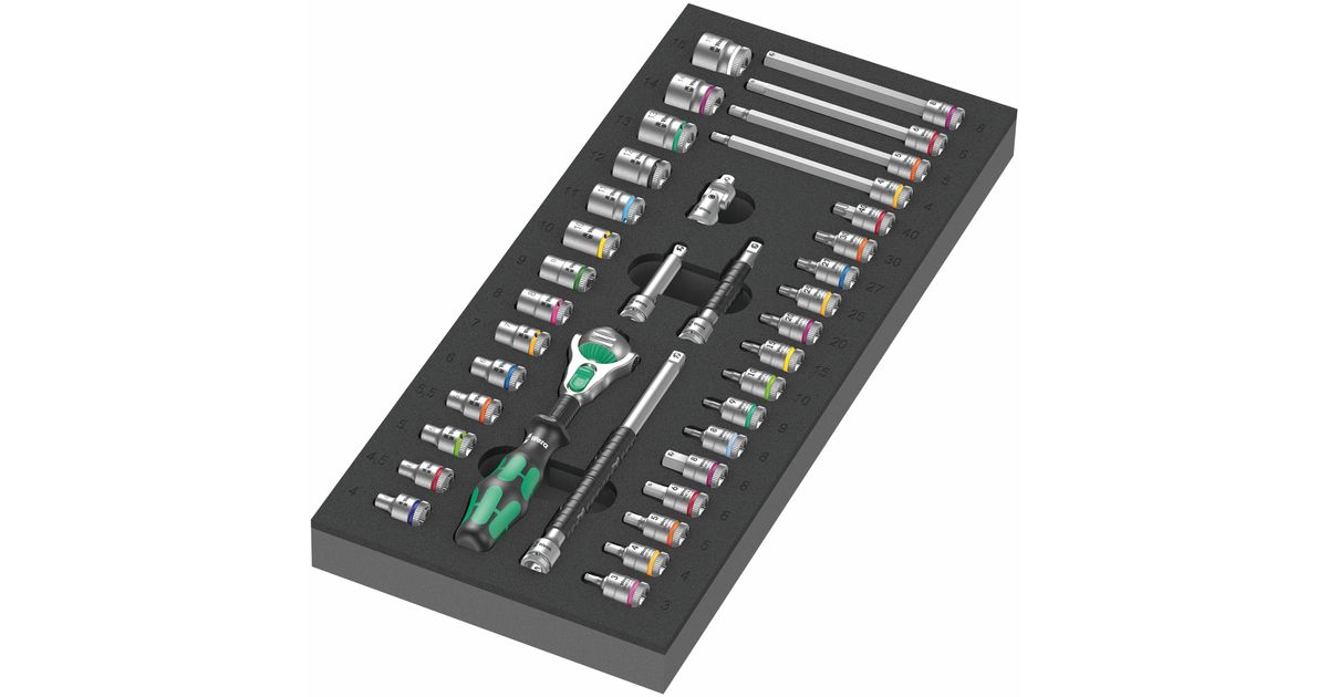 Wera 9720 Padrunvõtmete ja -otsakute komplekt vahus 8000 A Zyklop 1/4", 37osa