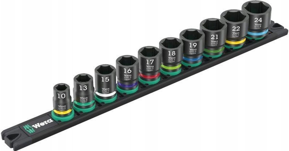 Wera Wera 9607 Mutri magnetriba B Impaktor 1 mutrivõtme komplekt 3/8 (must/roheline, 10 tk, löökvõtmete jaoks)