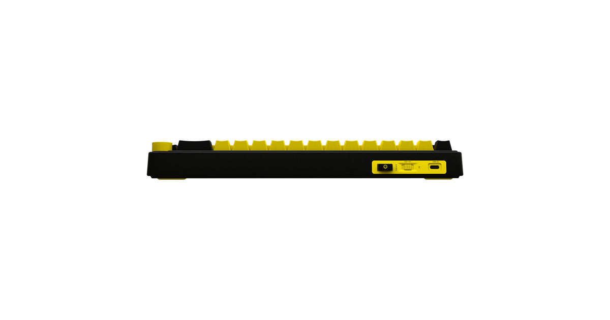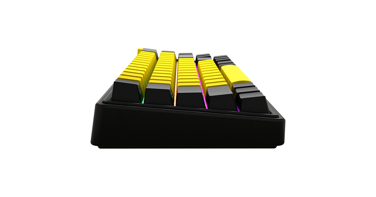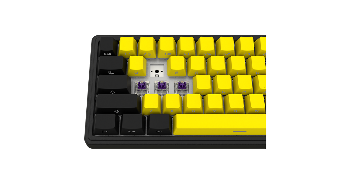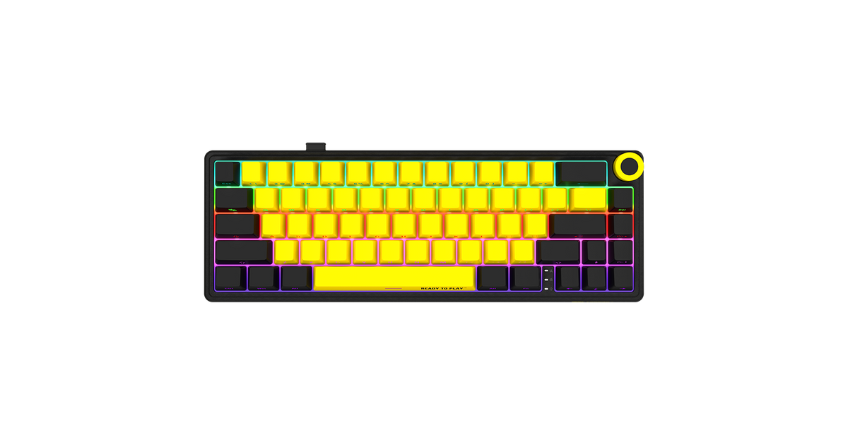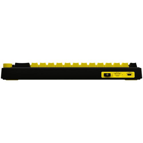 Wireless mechanical gaming keyboard Pro, 2.4 GHz, BT, RGB Backlight, 16 modes, 66 keys, 50M presses, linear Lorgar Toxic Purple switches, multimedia knob, built-in 3750 mAh battery, Hot Swap, Gasket mount, spring cable 2.3m, black yellow