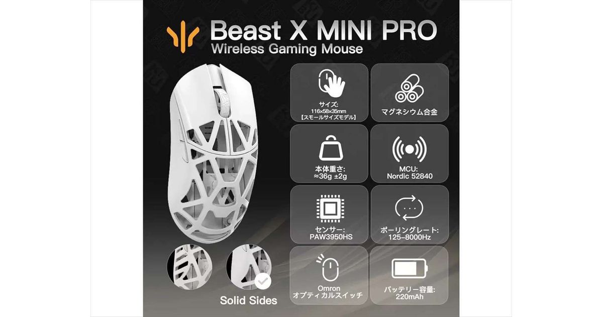 WLMOUSE Beast X Mini Pro Solid Sides mänguhiir, Omroni optilised lülitid - valge