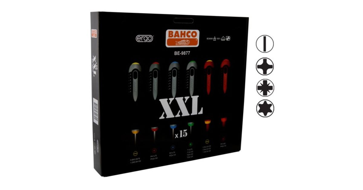 XXL Kruvikeerjate kmpl. ERGO™ 15 osa - SL3,0/4,0/5,5; PH1/2 1000V VDE; SL3,5/5,5; PH1/2; PZ1/2; T10/15/20/25