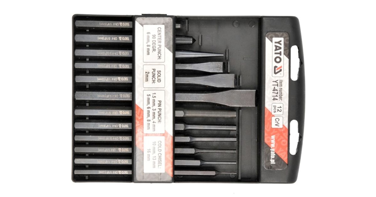 Professionaalse kvaliteediga peitlite, stantside ja stantside komplekt CrV kroom-vanaadiumi legeerterasest.