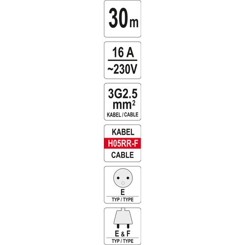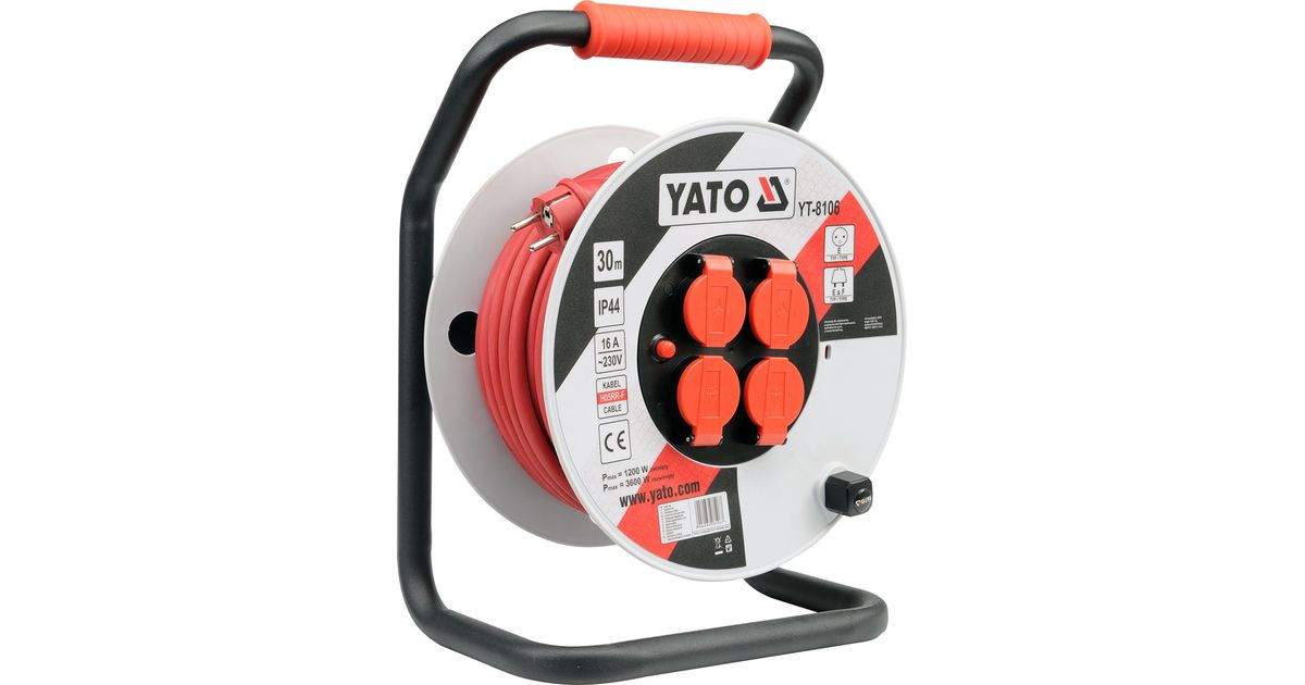 Yato YT-8106, 30 m, Hoonesisene/hooneväline, Tüüp E, Type F (CEE 7/4), IP44, Must, Punane, Valge