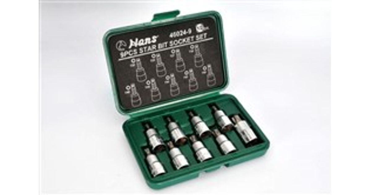 Zestaw nasadek, rodzaj: jednolite, profil: torx, suurus gniazda: 1/2 ", ilość narzędzi: 9 szt., w plastikowej walizce
