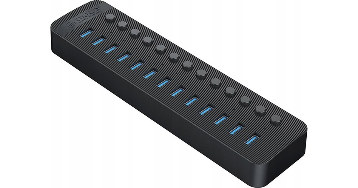 13-pordiline jaotur USB-A 3.0 lüliti-mustaga