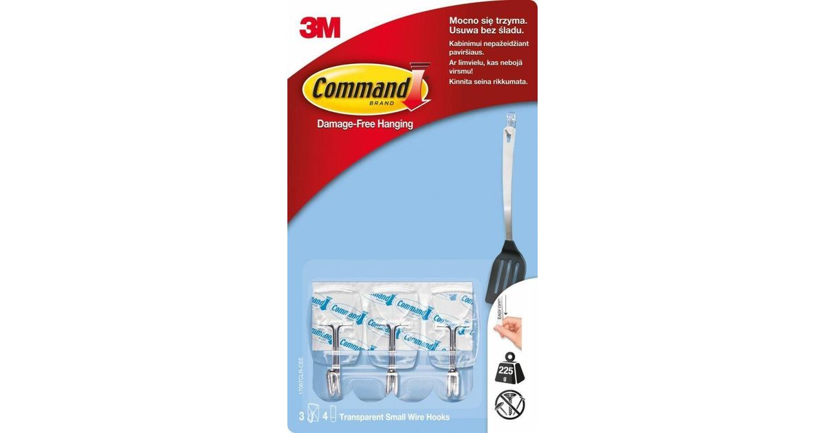 3M COMMAND Hooks 17067CRL with metal handle 3 hooks + 4 small transparent stripes