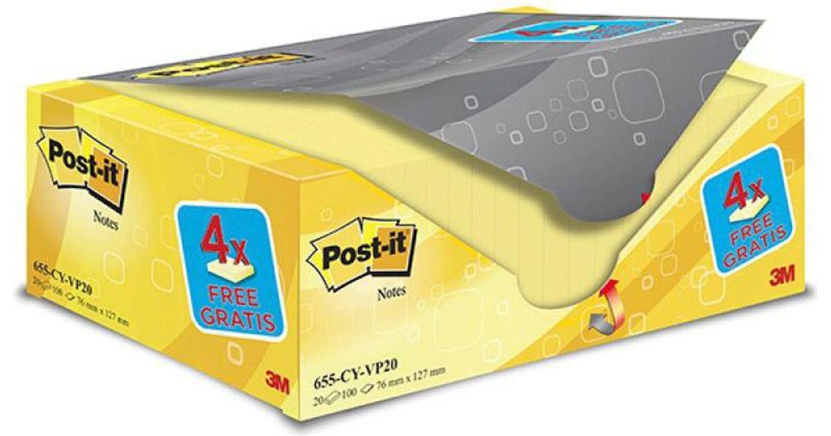 3m Samoop block. POST-IT® (655cy-VP20), 127x76mm, (20 + 4) x100 cards, yellow