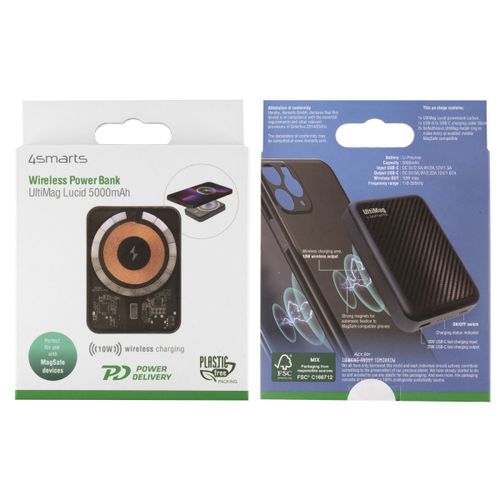 4smarts UltiMag, 5000 mAh, Litium polymeeri (LiPo), Adaptive Fast Charging, Quick Charge 3.0, Langaton lataaminen, Hiili