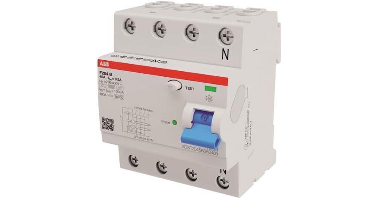 ABB Stotz S&J FI-Schutzschalter TypB 4P 40A,300mA,3kA,4TE F204B-40/0,3-4TE (2CSF204568R3400)
