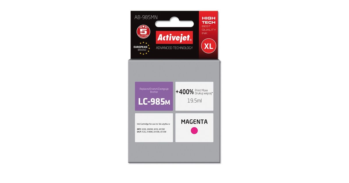 Activejet AB-985MN mustekasetti 1 kpl Yhteensopiva Korkea (XL) värintuotto Magenta