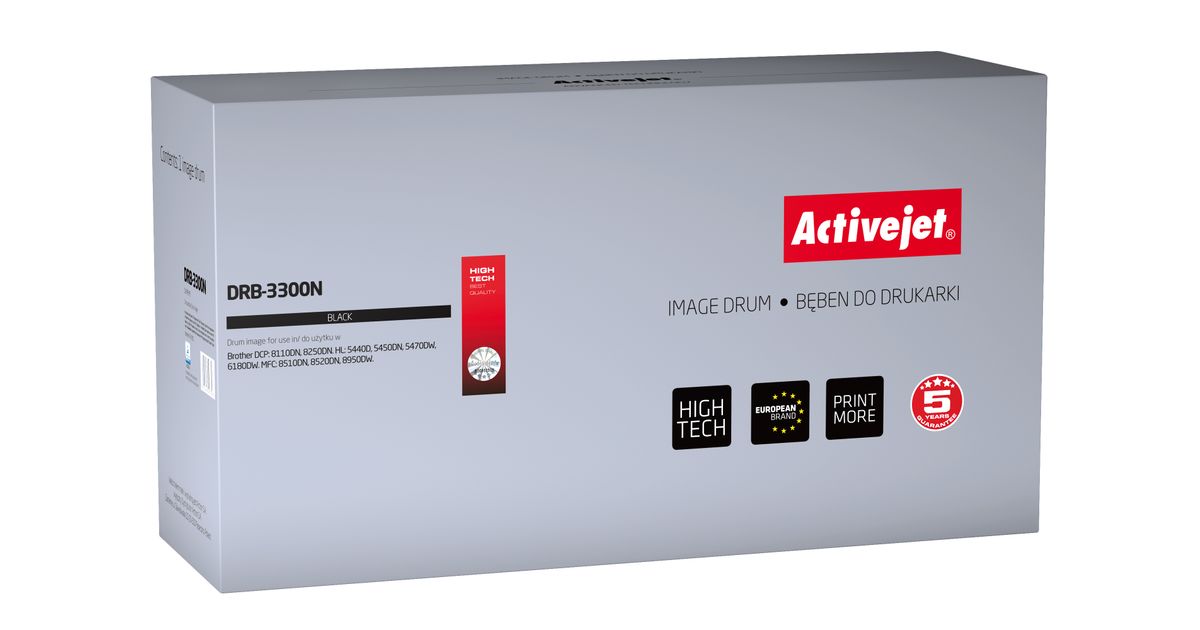 Activejet DRB-3300N, Yhteensopiva, Brother, Brother DCP: 8110DN, 8250DN. Brother HL: 5440D, 5450DN, 5470DW, 6180DW. Brother MFC: 8510DN,..., 1 kpl, 30000 sivua, Lasertulostus