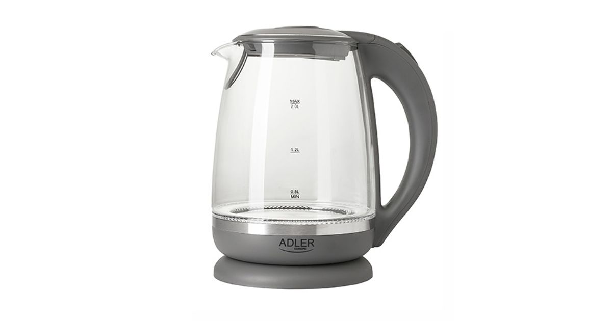 Adler AD 1286, 2 L, 2200 W, Harmaa, Läpinäkyvä, Lasi, Veden tason ilmaisin