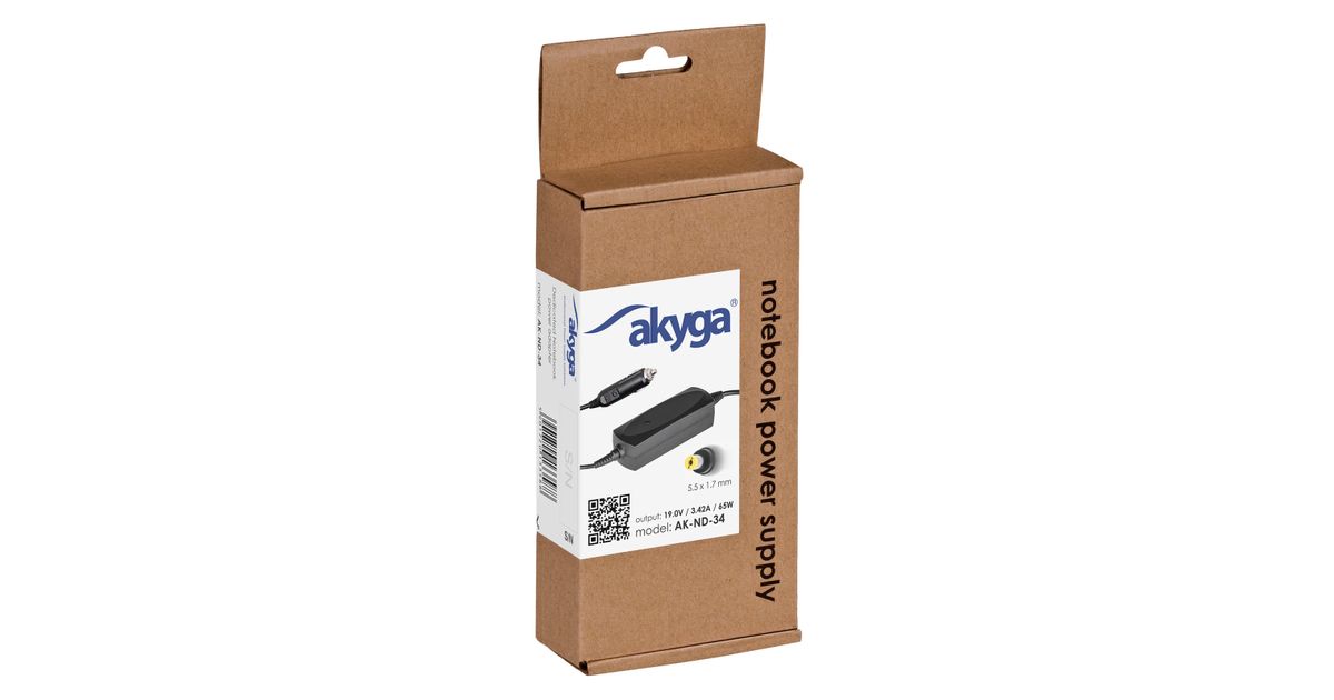Akyga Car notebook power supply Dedicated AK-ND-34 19V/3.42A 65W 5.5x1.7 mm ACER, Kannettava tietokone, Auto, 12 V, 65 W, 19 V, 3,42 A