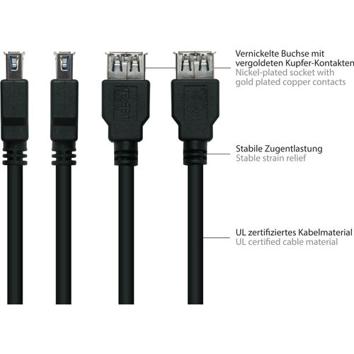 Alcasa UK30P-ASA-030S, 3 m, USB A, USB A, USB 3.2 Gen 1 (3.1 Gen 1), 5000 Mbit/s, Musta