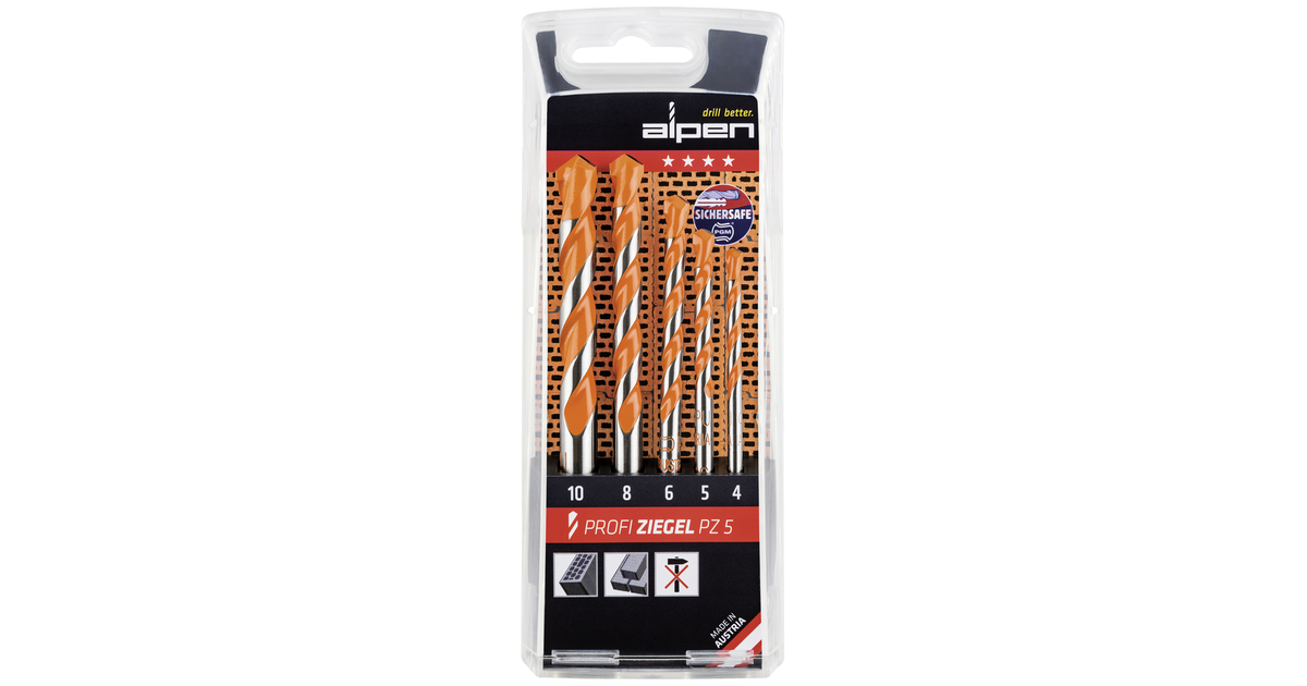 Alpen 200705100 Brickwork Drill Bit Set 5-Piece 4 Mm, 5 Mm, 6 Mm, 8 Mm, 10 Mm Cylinder Shank 1 Set