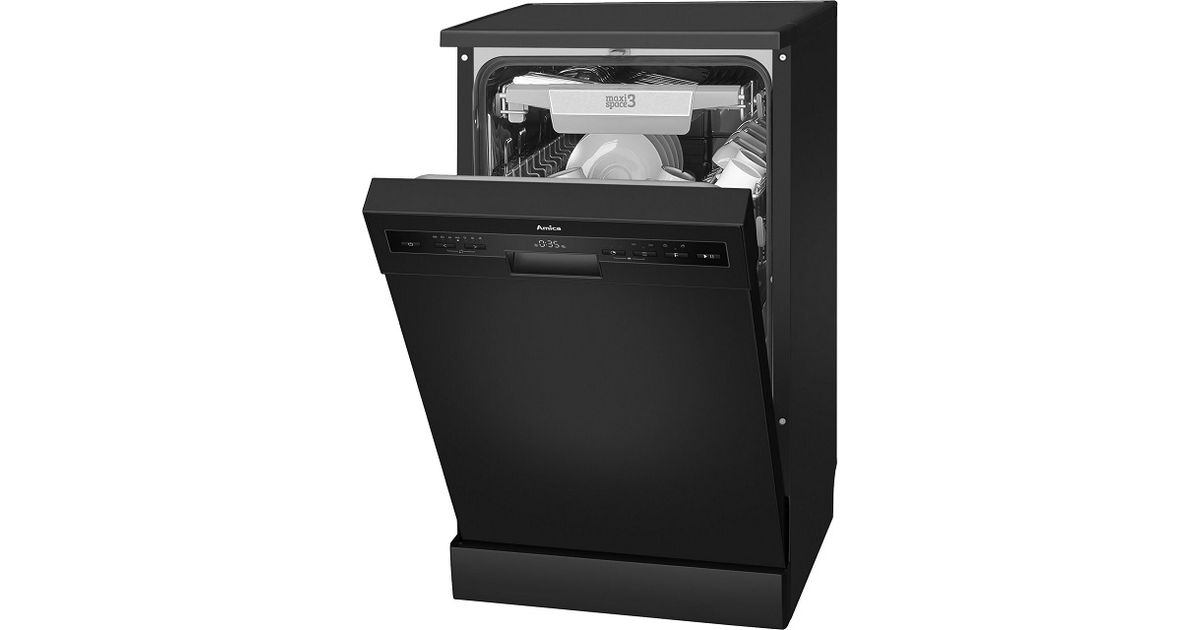 Amica MV 438 DCB, Vapaasti seisova, Slimline (45 cm), Musta, LED, 3 kori(a), 10 paikkoja