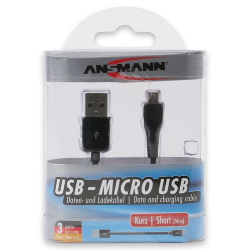 Ansmann USB - Micro USB, 0.2m, 0,2 m, USB A, Micro-USB A, USB 2.0, Uros/uros, Musta