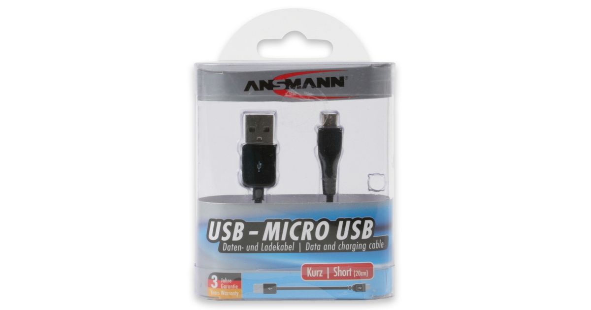 Ansmann USB - Micro USB, 0.2m USB-kaapeli 0,2 m USB 2.0 USB A Micro-USB A Musta