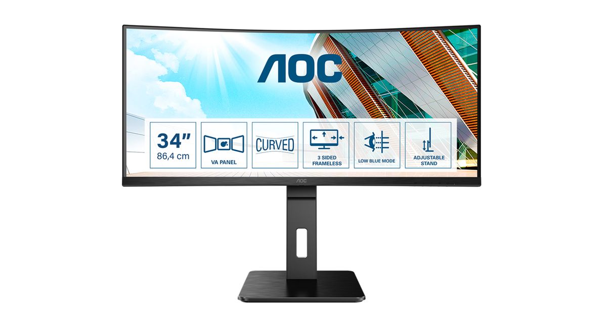 AOC P2 CU34P2A, 86,4 cm (34"), 3440 x 1440 pikseliä, Quad HD, LED, 1 ms, Musta