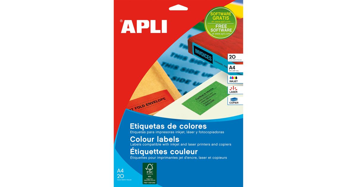 APLI Etiquettes 210x297 jaunes jet/laser/copieur 20 feuilles, Keltainen, Suorakulmio, Kiinteä, 210 x 297, A4, Universaali
