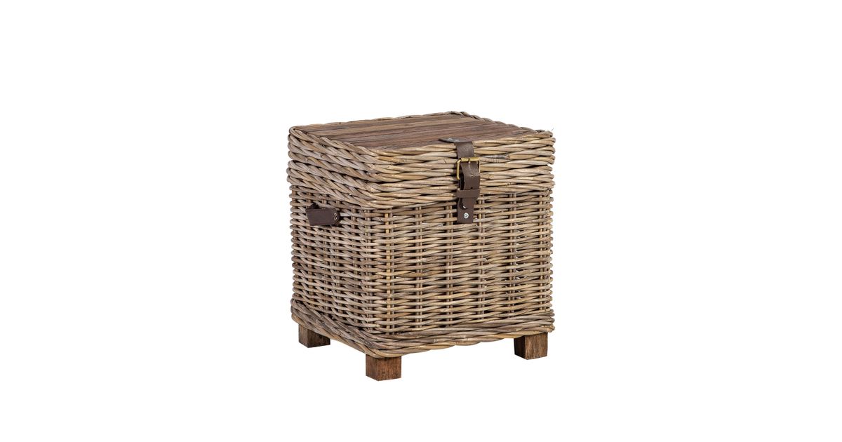 Arkku-apupöytä EGROS 42x42xH43cm, pöytälevy: kierrätetty puu, puinen runko luonnollisella rottinkipunoksella, harmaa. Punoksen harmaa väri on luonnollinen.